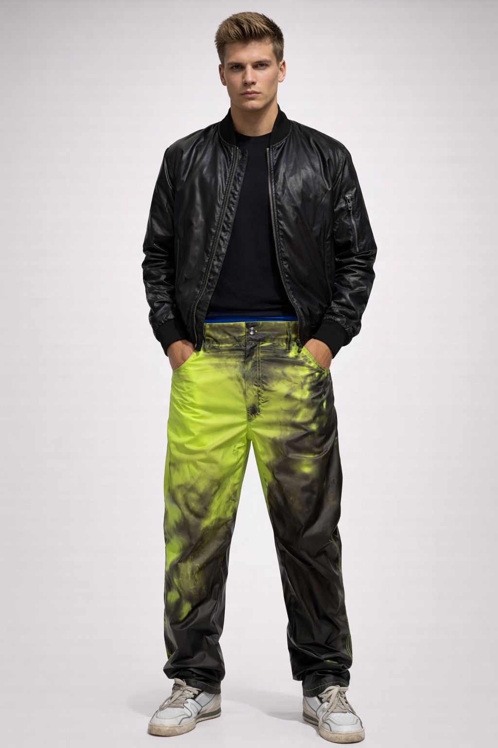 A modern baggy silhouette that reflects contemporary fashion culture.